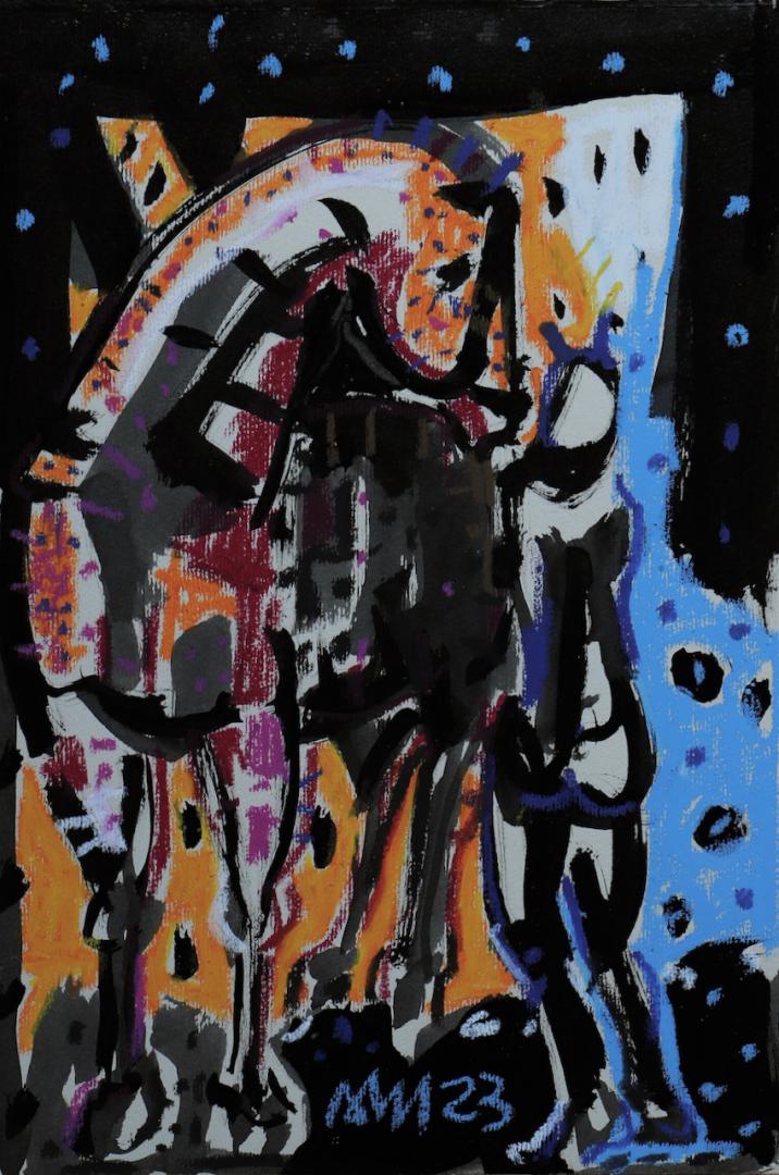 Techniques mixtes sur papier (Encre de Chine, pastel à l'huile, acrylique)