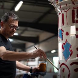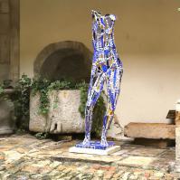 One of the characteristics of the city of Issoire that struck me during my very first visit was the almost Mediterranean color of the buildings, which is surprising in the heart of Auvergne... Born in Sicily, these warm and luminous hues of the South particularly "speak" to me. The sculptures I present, although made of welded metal, have the appearance and feel of ceramics thanks to the paint and varnish applied to them. For me, this is a reference to the colorful ceramics of Sicily that accompany everyday life and whose vivid colors have influenced my work.