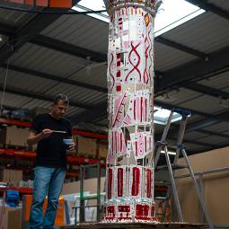 My proposal was therefore the creation of a column that would be an evocation, a personal interpretation of the columns of Saint-Austremoine and of the way in which the art and artists of yesterday inspire and nourish the art and artists of today. In the 19th century, during its restoration and the decision to paint the interior of the abbey church, the painter Anatole Dauvergne himself drew inspiration from the colors and motifs of the Romanesque period, bringing a new dimension to the building that remains one of its distinctive features to this day.