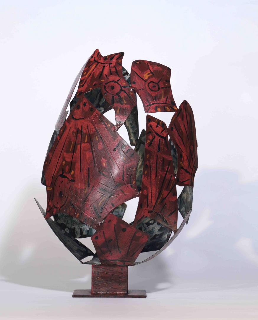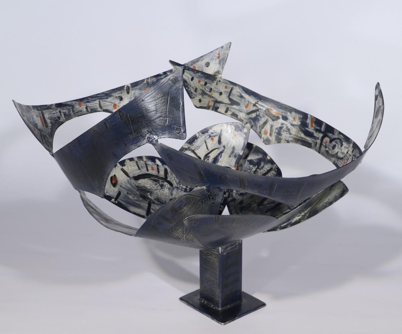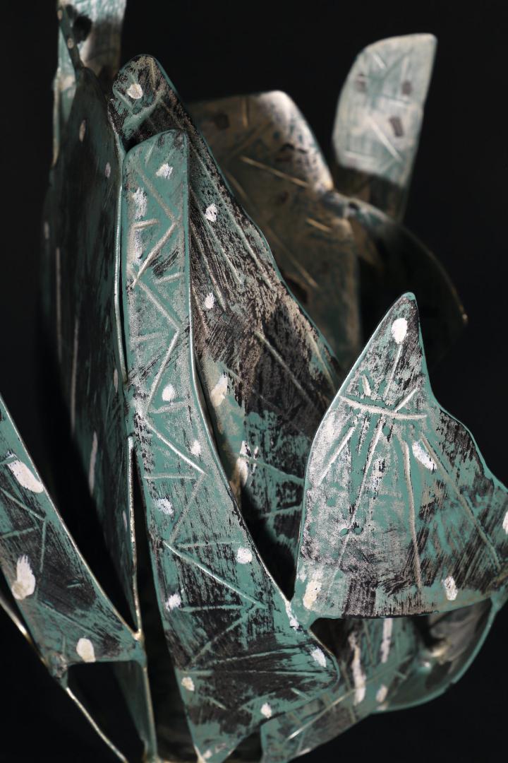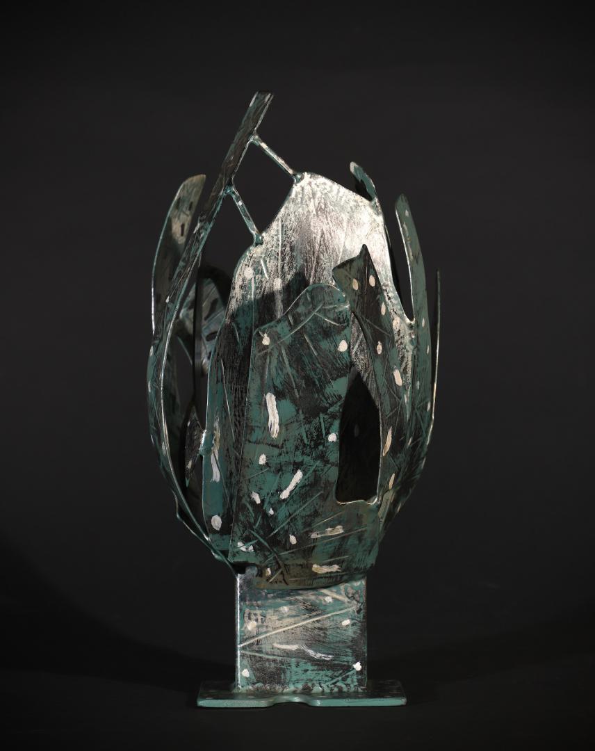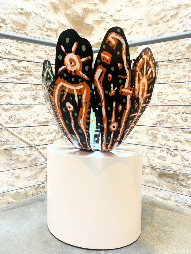 Partant des lignes d’une coupe, ces sculptures empruntent très souvent des formes de fleurs, de corolles en éclosion évoquant un monde végétal et floral, coloré et onirique… La Nature, en créatrice ultime, m’éblouit par l’infinie richesse de sa palette de couleurs et de formes, et les fleurs, telles des sculptures vivantes, sont venues imposer leur présence dans la rigidité et la froideur du métal que j’utilise. Ces pièces évoquent les sculptures vivantes mais éphémères que ces sont les fleurs, et à travers mon travail en acier soudé, je les rends immortelles, éternelles, j’en imprime le souvenir dans la matière. Réciproquement, les courbes et les arrondis des formes de la Nature que sont les pétales et les corolles, apportent fluidité, rythme et légèreté à l’acier rigide et tranchant que je travaille.