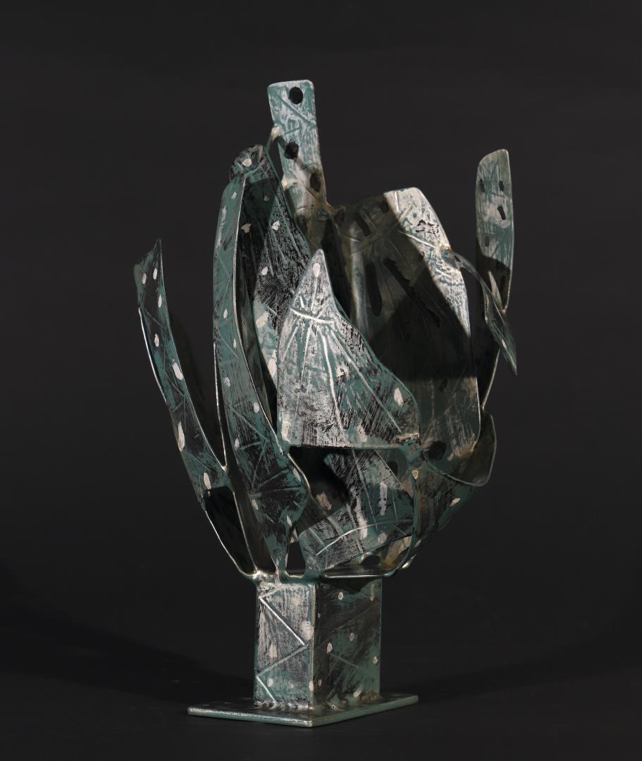 J'ai débuté cette série de sculptures avec des œuvres thermolaquées et vernies - ce qui leur donne cet aspect céramique recherché - mais au fils du temps, de nouvelles possibilités et de nouvelles envies me sont apparues. Sur les pièces de cette série, je me suis tourné vers un travail sur la matière et sur la patine afin d'apporter à l'œuvre une sorte de vécu, un passé imaginaire, comme si elles avaient séjourné plusieurs siècles au fond de la Méditerranée où l’eau et le temps auraient laissé leur empreinte...