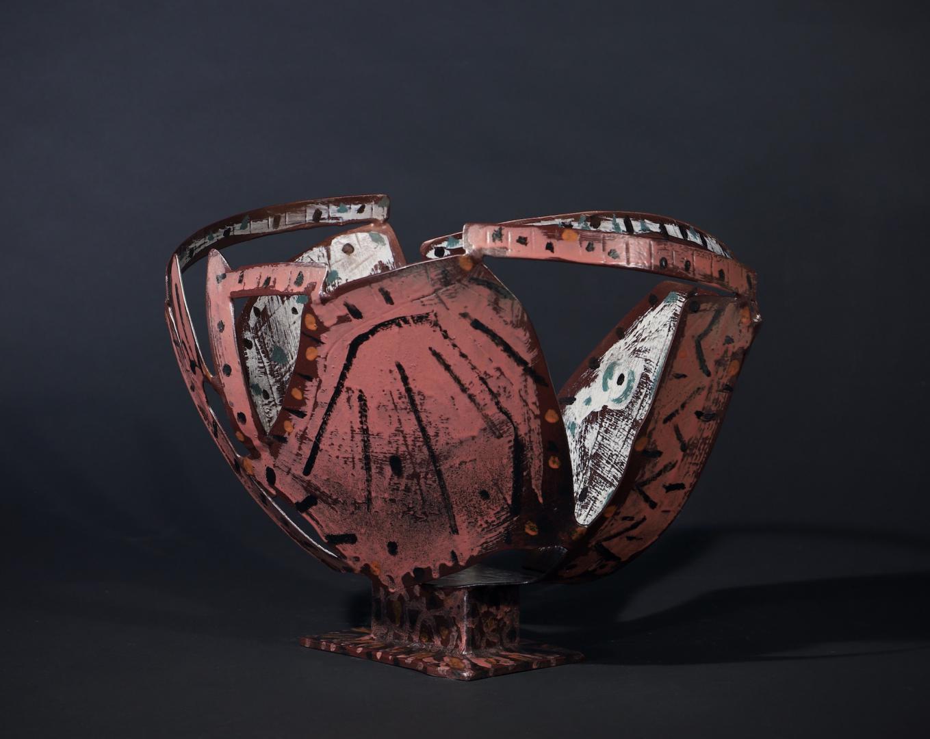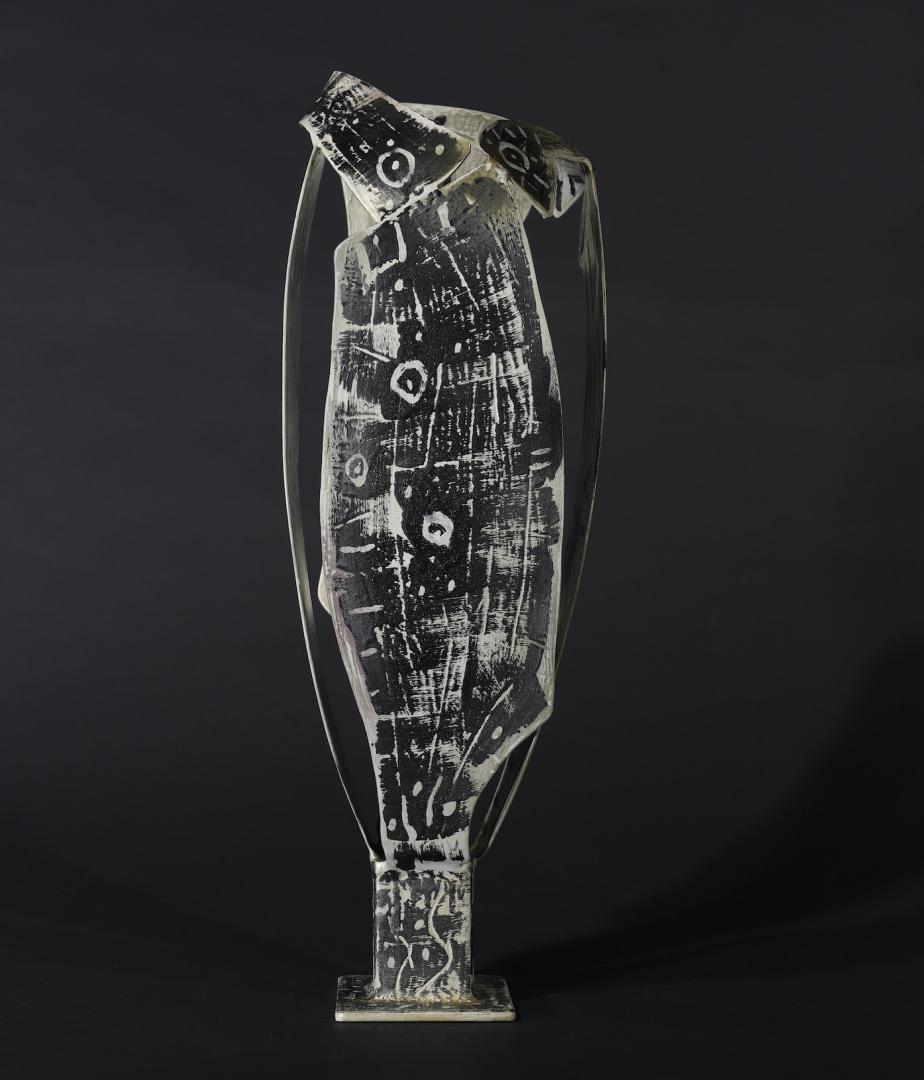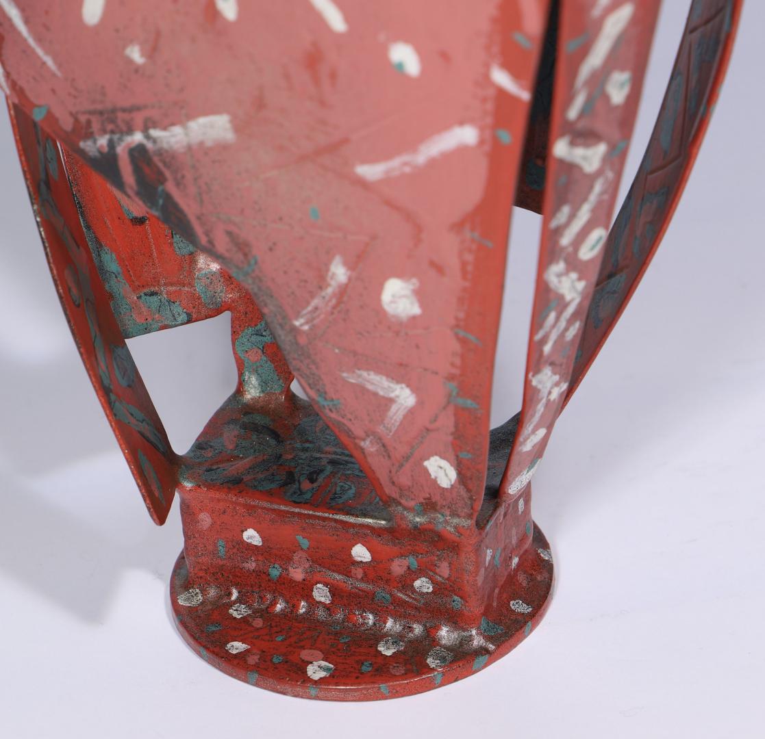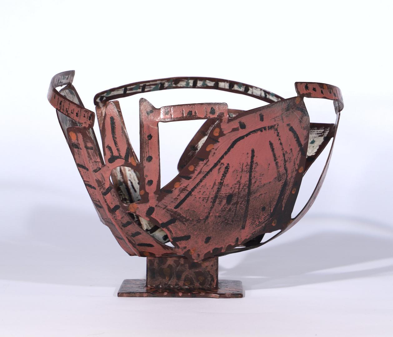 Mais avant d’être un plateau ou un vase, ces pièces sont d’abord et surtout des sculptures et leur réalisation a été guidée par mes exigences de sculpteur, à savoir une œuvre rythmée, qui se définit et qui à sa propre fonction dans l’espace. La peinture est venue jouer un rôle primordial en exaltant les formes de ces sculptures, les faisant vibrer d’avantage, leur donnant un aspect graphique et libre. Et comme je l’explique souvent à propos de mes sculptures peintes, j'essaie à travers une peinture quasi tribale "d'exploser" ces creux et ces pleins dans un tourbillon agité mais bien proportionné et guidé par un certain rythme voulu et essentiel à mon œuvre."