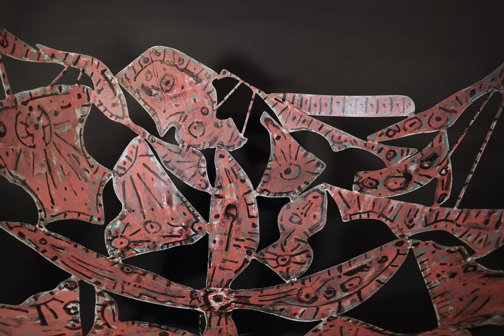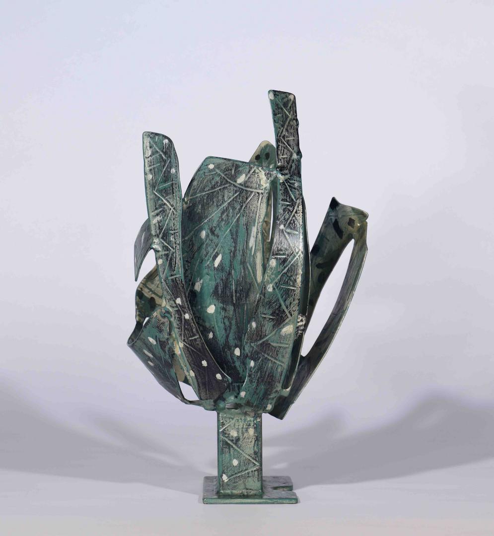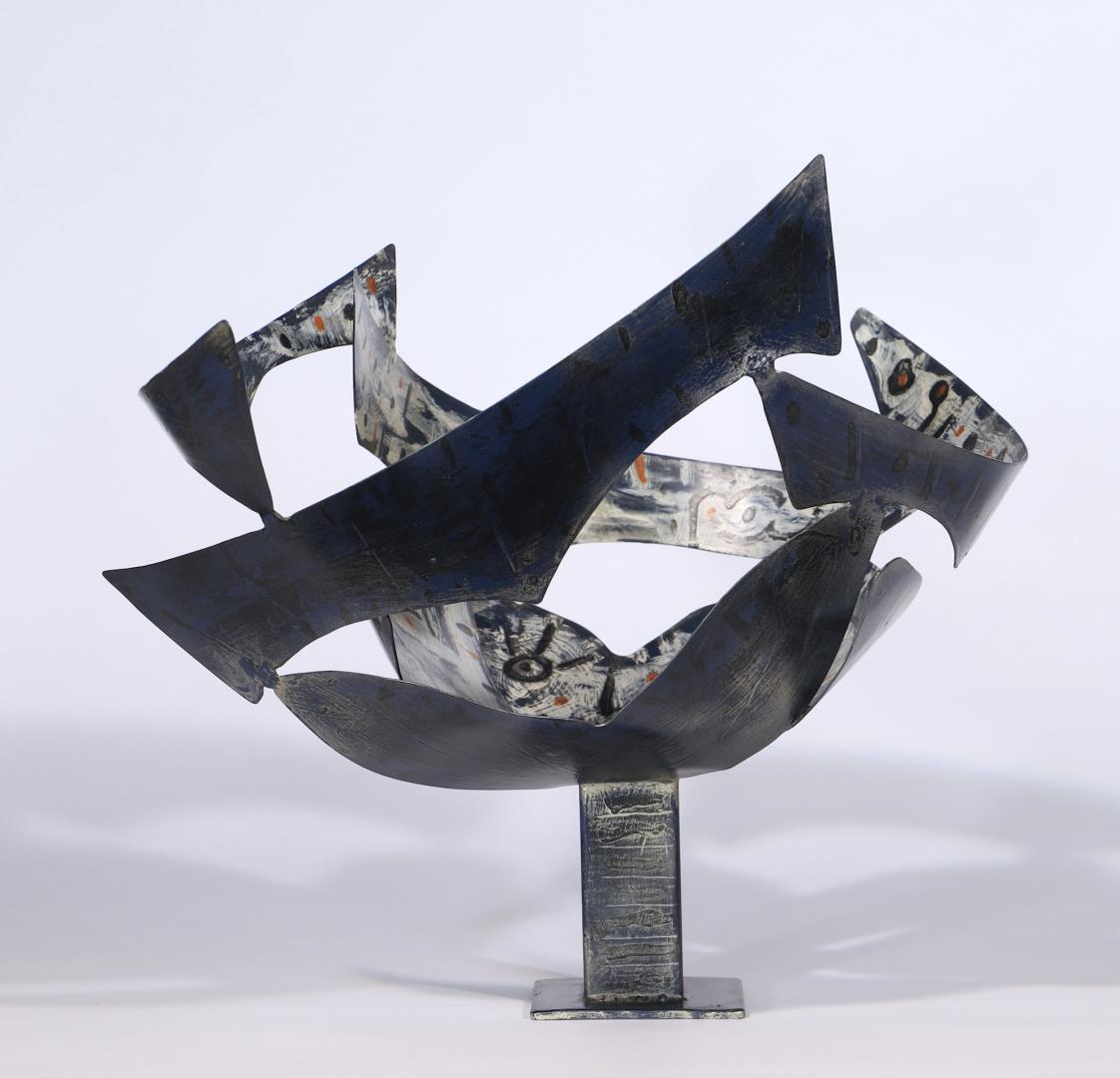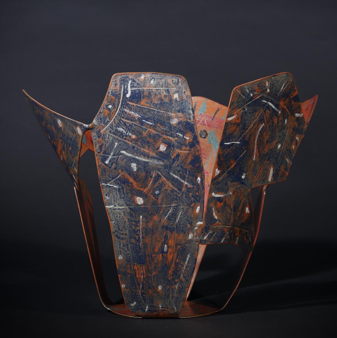 Mais avant d’être un plateau ou un vase, ces pièces sont d’abord et surtout des sculptures et leur réalisation a été guidée par mes exigences de sculpteur, à savoir une œuvre rythmée, qui se définit et qui à sa propre fonction dans l’espace. La peinture est venue jouer un rôle primordial en exaltant les formes de ces sculptures, les faisant vibrer d’avantage, leur donnant un aspect graphique et libre. Et comme je l’explique souvent à propos de mes sculptures peintes, j'essaie à travers une peinture quasi tribale "d'exploser" ces creux et ces pleins dans un tourbillon agité mais bien proportionné et guidé par un certain rythme voulu et essentiel à mon œuvre."