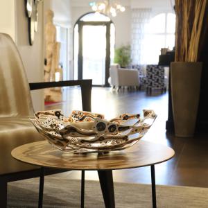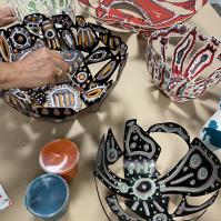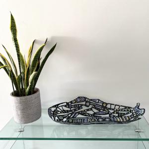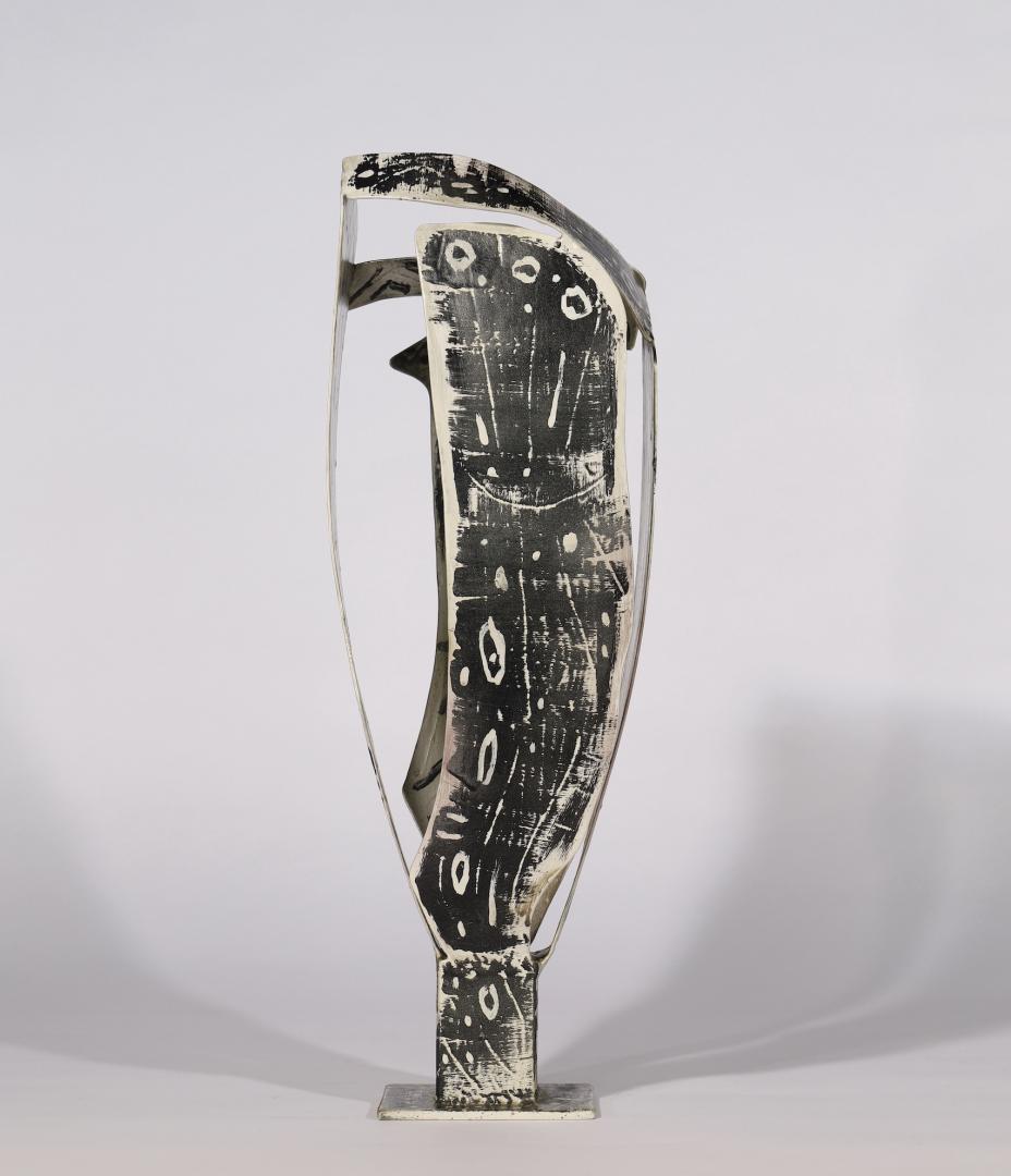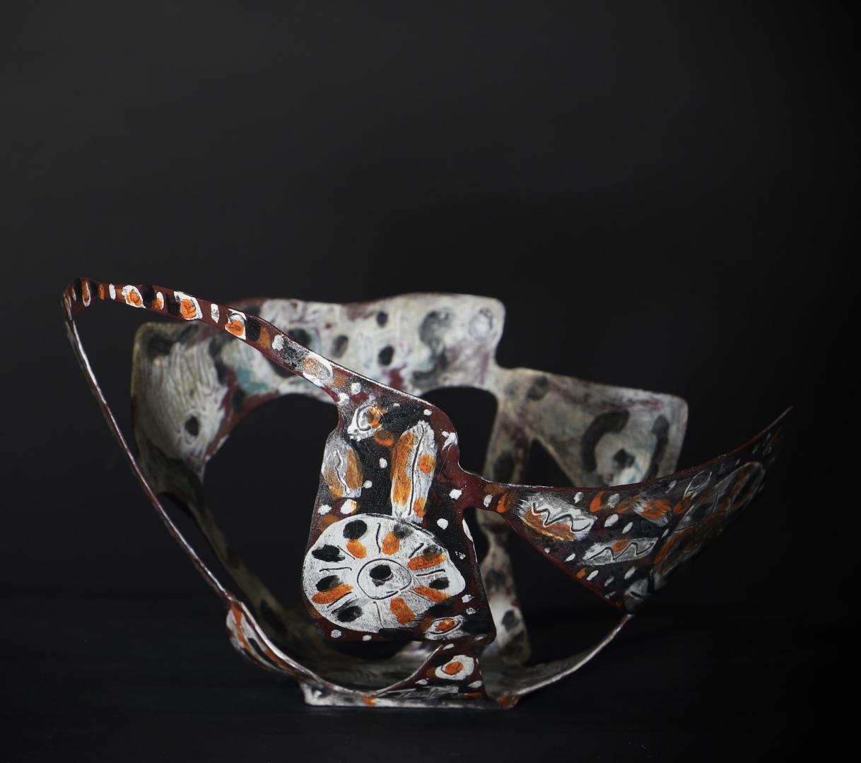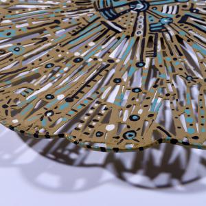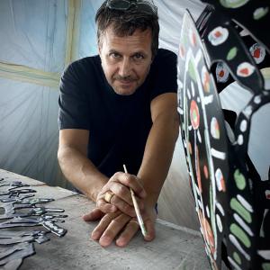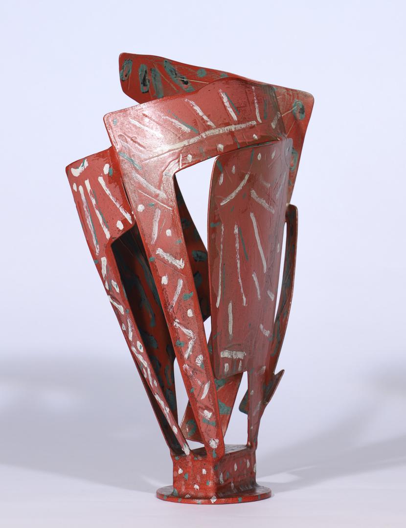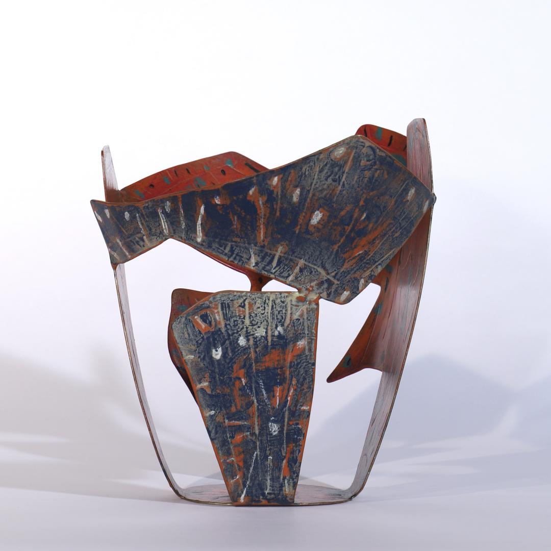 Mais avant d’être un plateau ou un vase, ces pièces sont d’abord et surtout des sculptures et leur réalisation a été guidée par mes exigences de sculpteur, à savoir une œuvre rythmée, qui se définit et qui à sa propre fonction dans l’espace. La peinture est venue jouer un rôle primordial en exaltant les formes de ces sculptures, les faisant vibrer d’avantage, leur donnant un aspect graphique et libre. Et comme je l’explique souvent à propos de mes sculptures peintes, j'essaie à travers une peinture quasi tribale "d'exploser" ces creux et ces pleins dans un tourbillon agité mais bien proportionné et guidé par un certain rythme voulu et essentiel à mon œuvre."