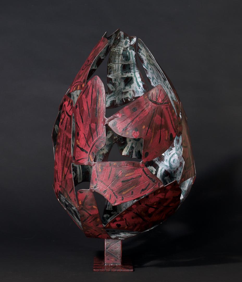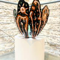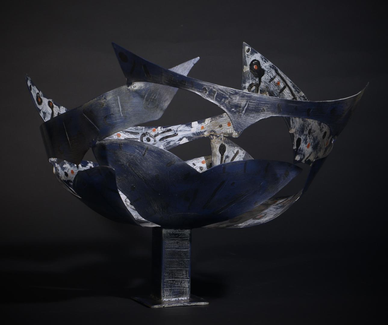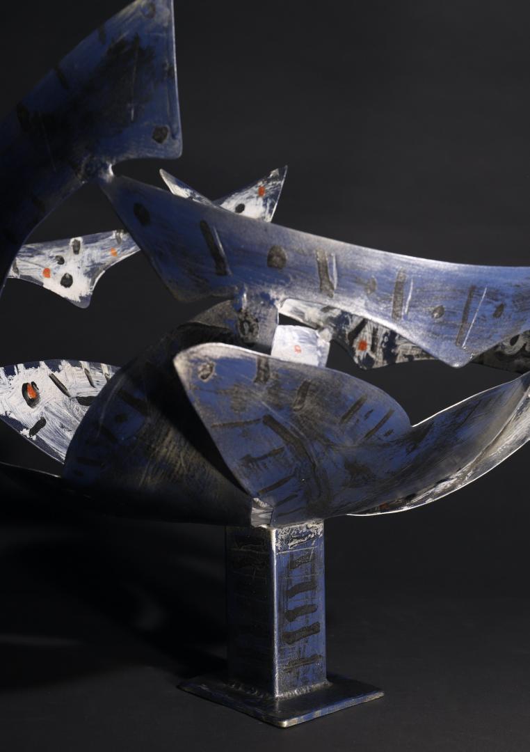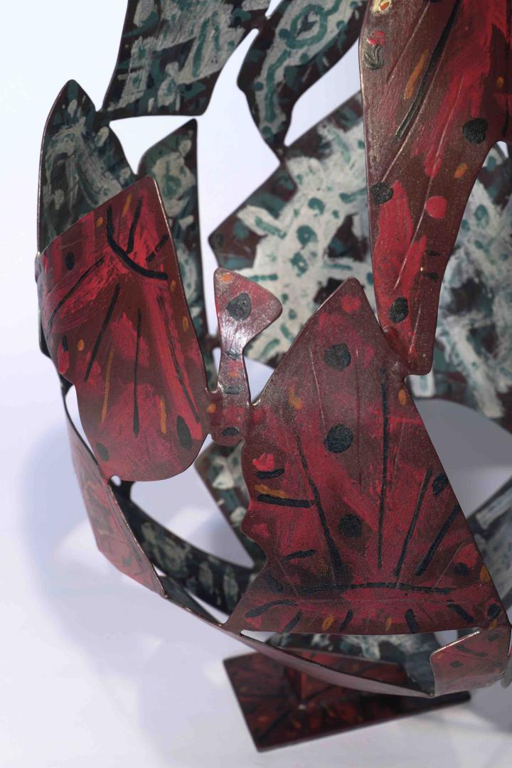 Partant des lignes d’une coupe, ces sculptures empruntent très souvent des formes de fleurs, de corolles en éclosion évoquant un monde végétal et floral, coloré et onirique… La Nature, en créatrice ultime, m’éblouit par l’infinie richesse de sa palette de couleurs et de formes, et les fleurs, telles des sculptures vivantes, sont venues imposer leur présence dans la rigidité et la froideur du métal que j’utilise. Ces pièces évoquent les sculptures vivantes mais éphémères que ces sont les fleurs, et à travers mon travail en acier soudé, je les rends immortelles, éternelles, j’en imprime le souvenir dans la matière. Réciproquement, les courbes et les arrondis des formes de la Nature que sont les pétales et les corolles, apportent fluidité, rythme et légèreté à l’acier rigide et tranchant que je travaille.