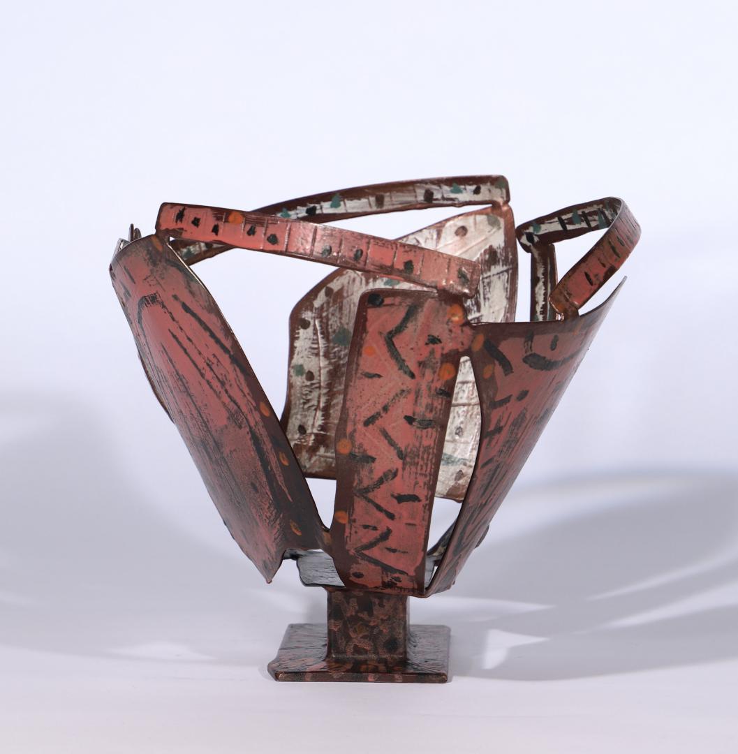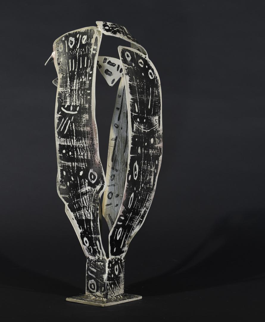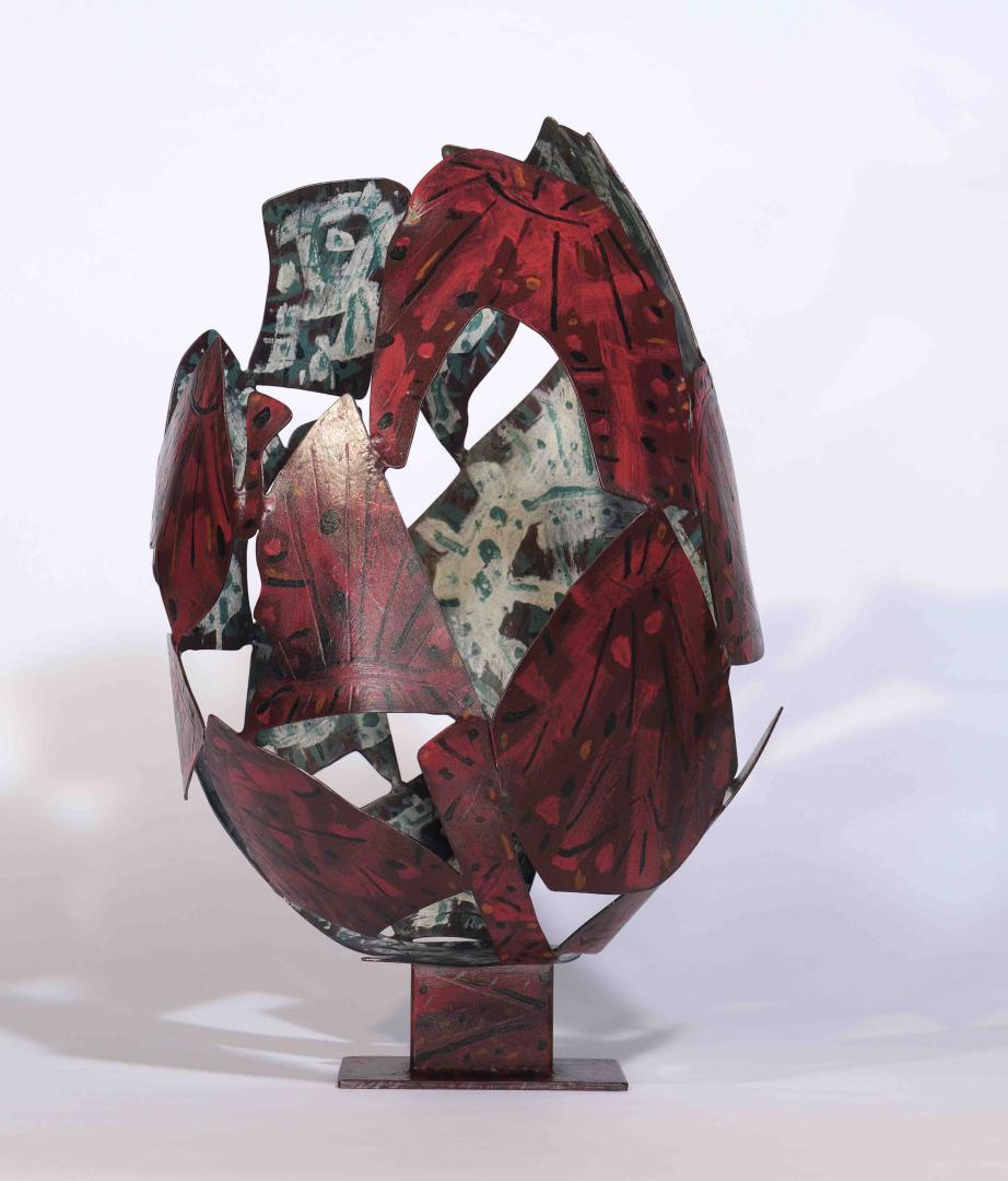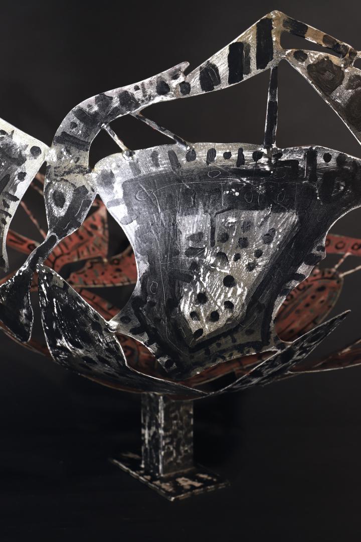 Partant des lignes d’une coupe, ces sculptures empruntent très souvent des formes de fleurs, de corolles en éclosion évoquant un monde végétal et floral, coloré et onirique… La Nature, en créatrice ultime, m’éblouit par l’infinie richesse de sa palette de couleurs et de formes, et les fleurs, telles des sculptures vivantes, sont venues imposer leur présence dans la rigidité et la froideur du métal que j’utilise. Ces pièces évoquent les sculptures vivantes mais éphémères que ces sont les fleurs, et à travers mon travail en acier soudé, je les rends immortelles, éternelles, j’en imprime le souvenir dans la matière. Réciproquement, les courbes et les arrondis des formes de la Nature que sont les pétales et les corolles, apportent fluidité, rythme et légèreté à l’acier rigide et tranchant que je travaille.