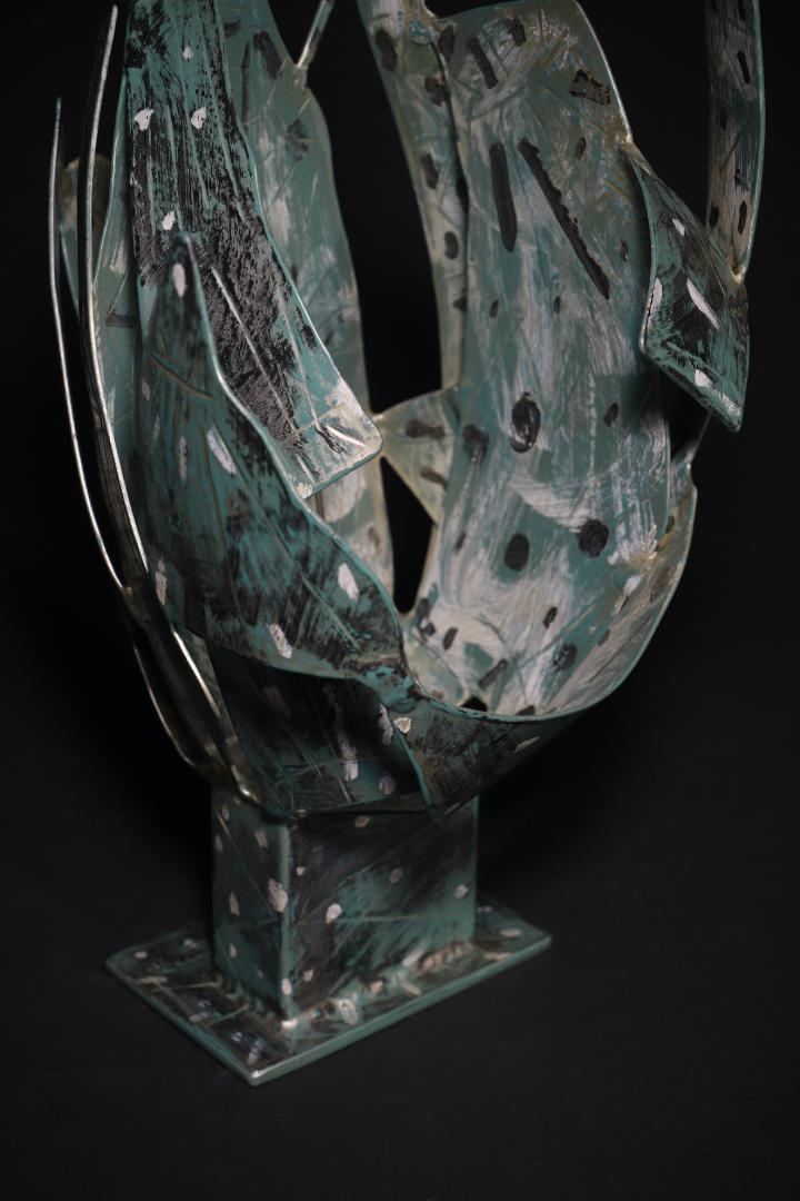 J'ai débuté cette série de sculptures avec des œuvres thermolaquées et vernies - ce qui leur donne cet aspect céramique recherché - mais au fils du temps, de nouvelles possibilités et de nouvelles envies me sont apparues. Sur les pièces de cette série, je me suis tourné vers un travail sur la matière et sur la patine afin d'apporter à l'œuvre une sorte de vécu, un passé imaginaire, comme si elles avaient séjourné plusieurs siècles au fond de la Méditerranée où l’eau et le temps auraient laissé leur empreinte...